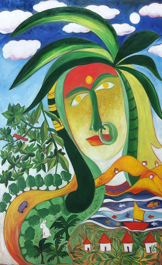 Shanthi, Oil Paints on Canvas, 24″ x 36″, 2022